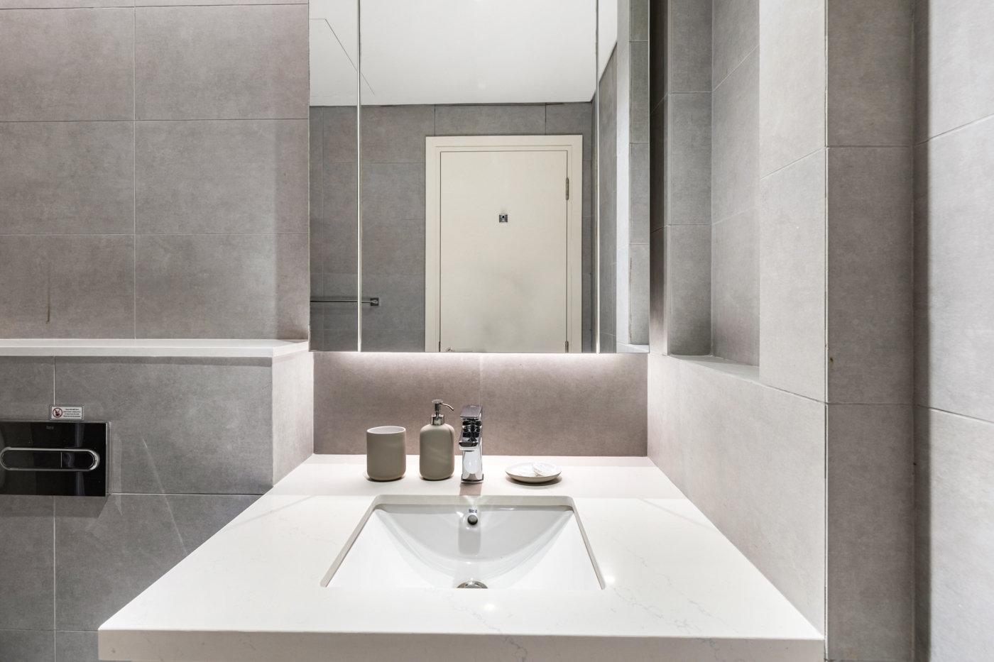 • Spacious countertop for toiletries