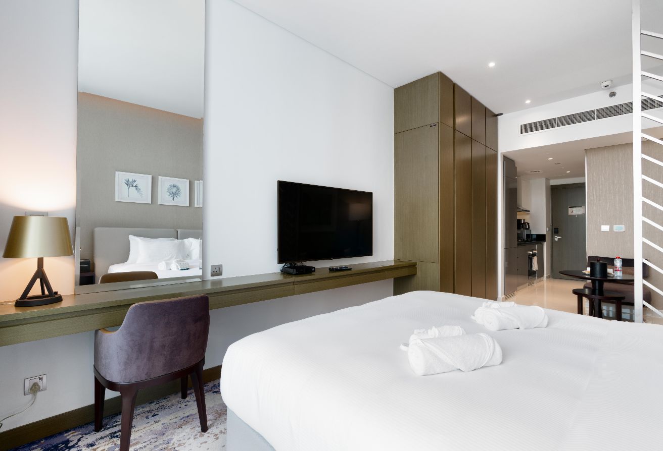 This fully furnished studio in Damac Maison Priv offers a calm, elegant atmosphere with a dedicated workspace, making it ideal for professionals, couples, or business travelers. Enjoy a bright, well-designed layout, beautiful views, and a move-in-ready home tailored for both short- and long-term stays.
