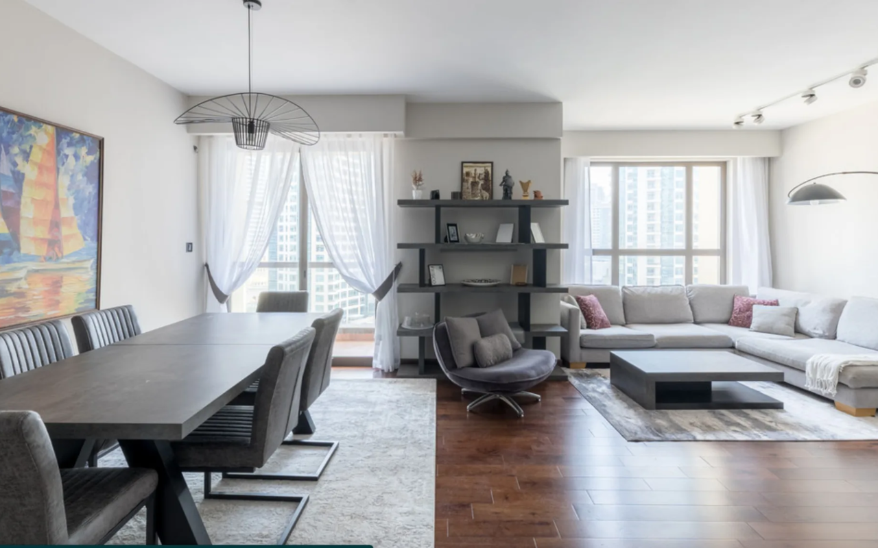 * Spacious living area with large windows