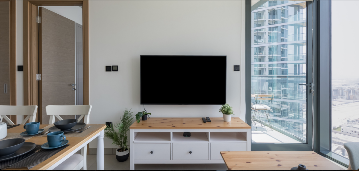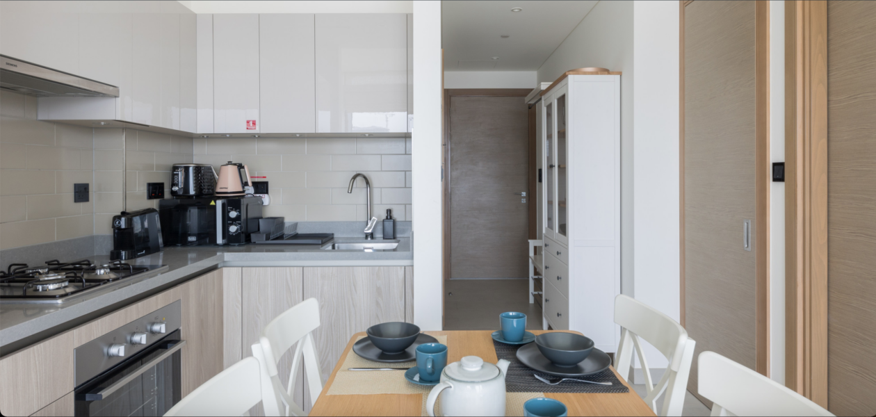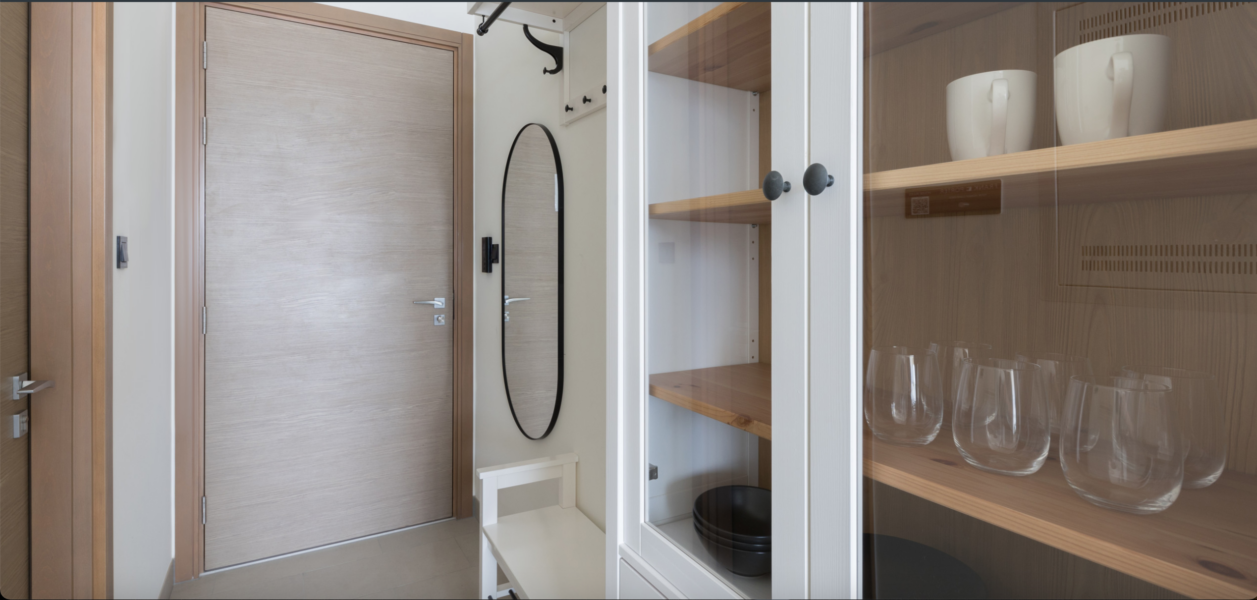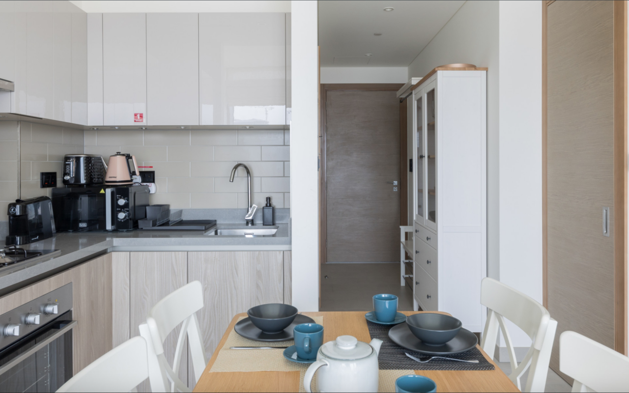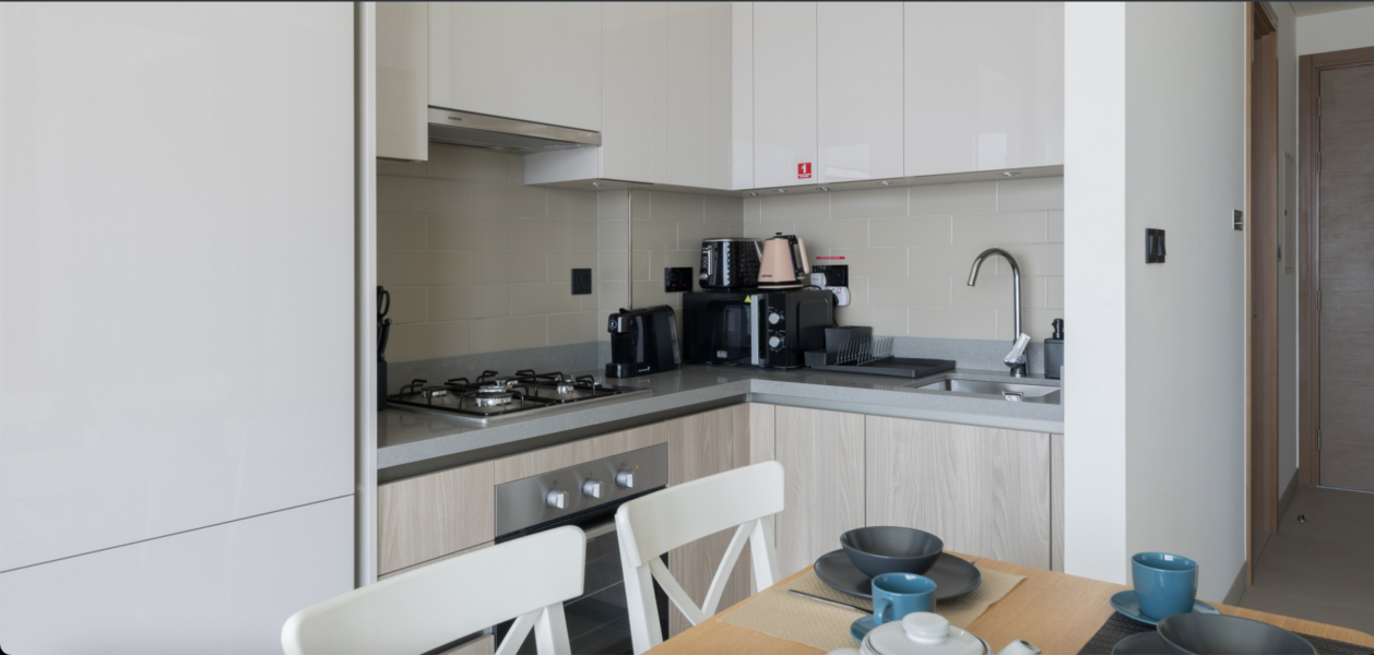 This cozy Swedish-style home features warm wood accents, floor-to-ceiling windows, a modern open kitchen, a calming bedroom, a spacious bathroom, and a balcony with community and park views. Perfect for singles or couples seeking a quiet, design-focused home in one of Dubai’s greenest waterfront communities.