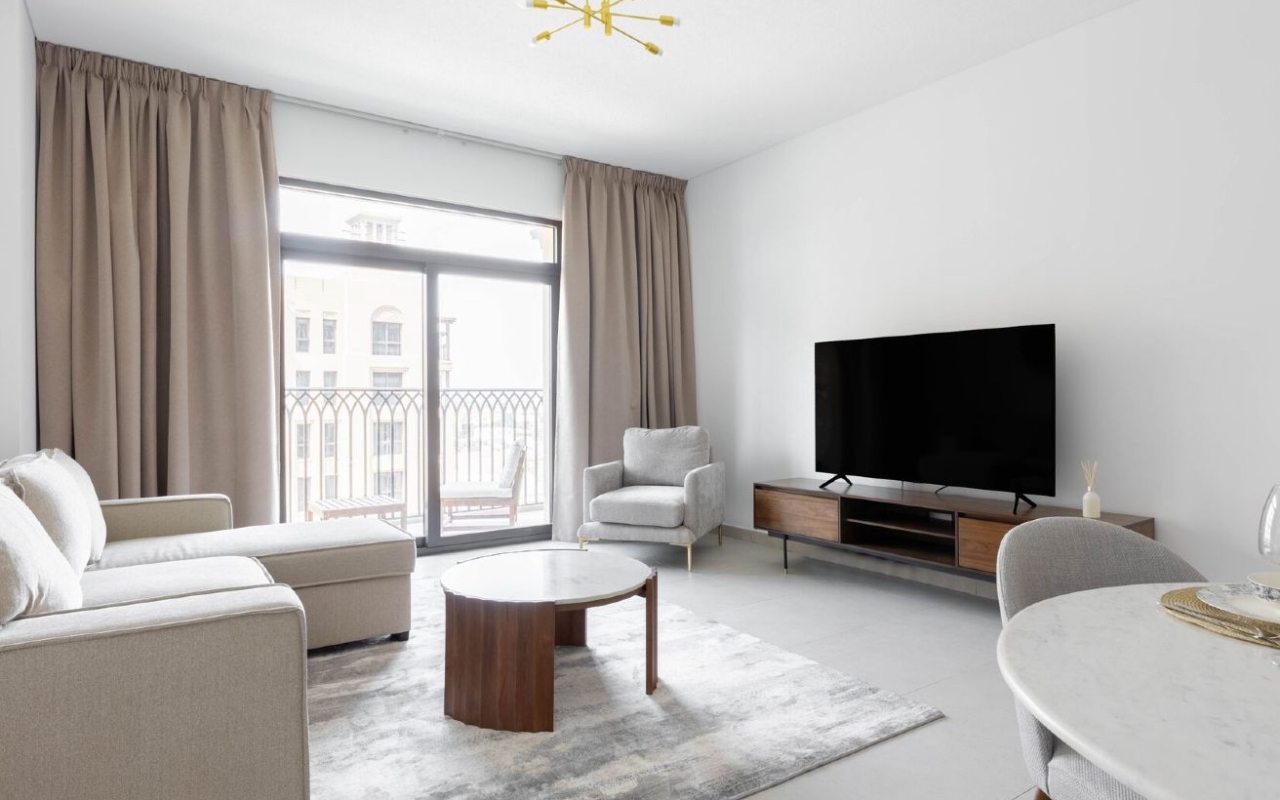 Newly furnished and very stylish one-bedroom apartment offering excellent value for money in Madinat Jumeirah Living. This is one of the best deals in the area, with flexible rental options available. Whether you are looking to stay for 3 months, 6 months, or longer, we can prepare a tailored package that suits your needs.